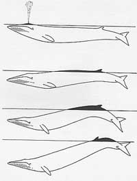 Il nuoto di superficie si alterna a quello in immersione ed è caratteristico della specie: si hanno 3 minuti in superficie con 4/8 atti respiratori accompagnati o meno dal soffio; quindi si immerge, per un tempo che varia dai 5 ai 15 minuti, inarcando vistosamente il dorso e parte del peduncolo caudale. La coda non viene quasi mai sollevata dall'acqua.