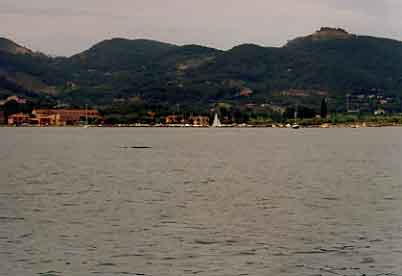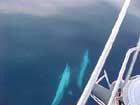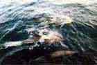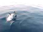Tutto a un tratto la superficie dell'acqua vicino alla barca si increspa, emerge un triangolo scuro,la pinna dorsale, seguita dalla groppa; la groppa brilla sotto la luce del sole, è un attimo poi, apparentemente, più nulla. Ma ecco di nuovo la scena si ripete: ora i triangoli sono due, tre... cinque. Un salto, un colpo di coda per accelerare il nuoto. E un esclamazione: i delfini!